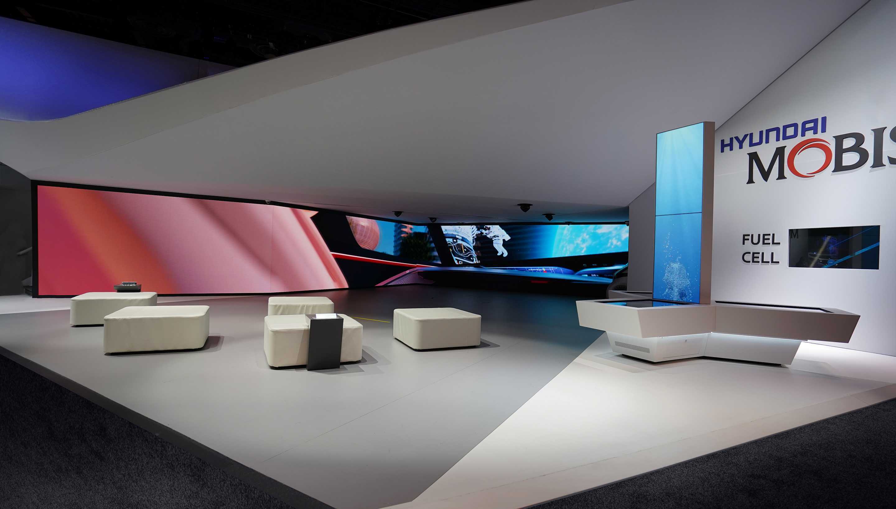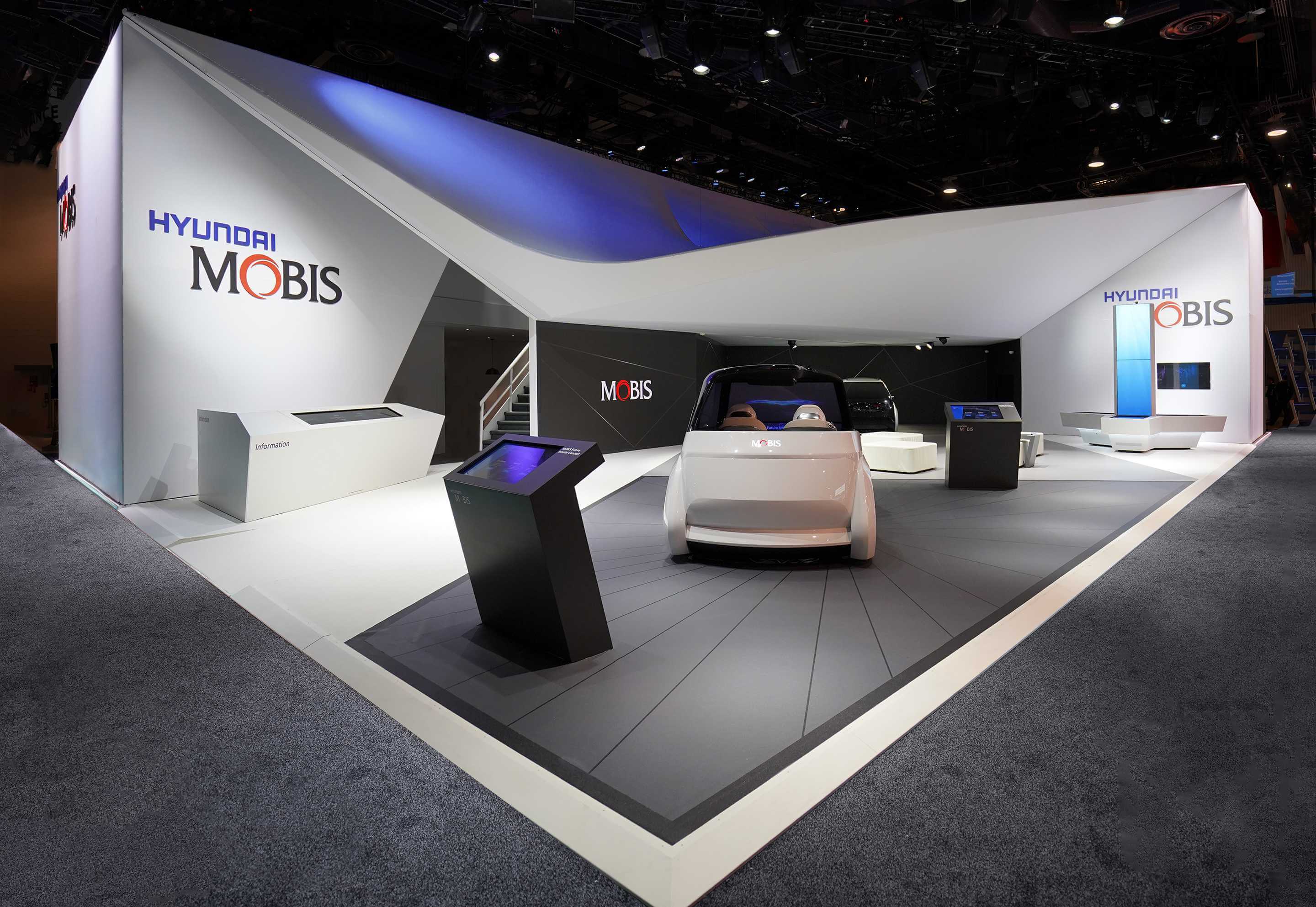 Our design represented Hyundai Mobis’ aspiration to playing a leading role in the future of automotive industry. As traditional car brands are challenged to adapt to new market requirements, technology is more than ever becoming a key factor. The Hyundai Mobis booth at CES 2019 highlighted the innovative autonomous driving technologies that are stimulating this change, but are usually hidden underneath a metal skin.