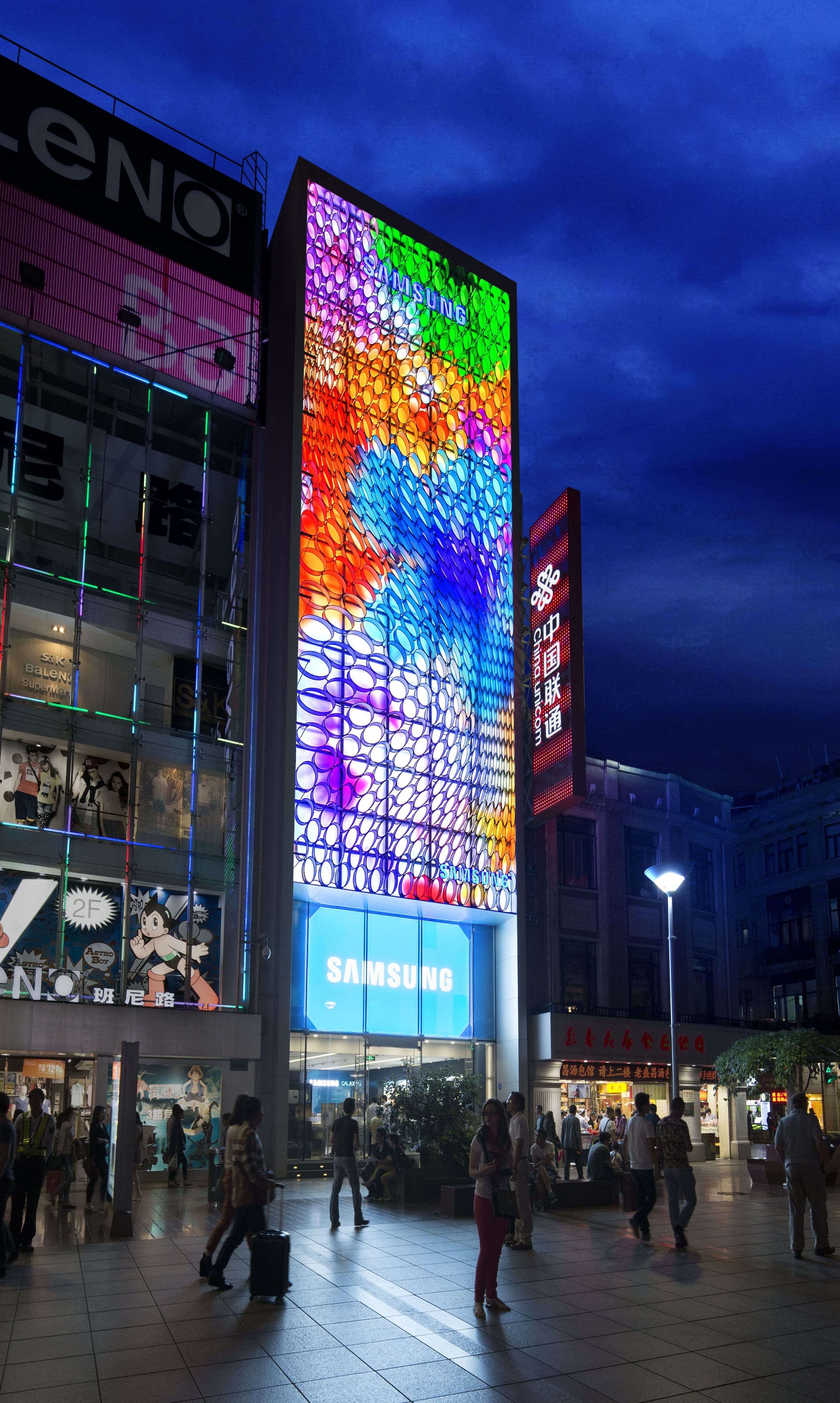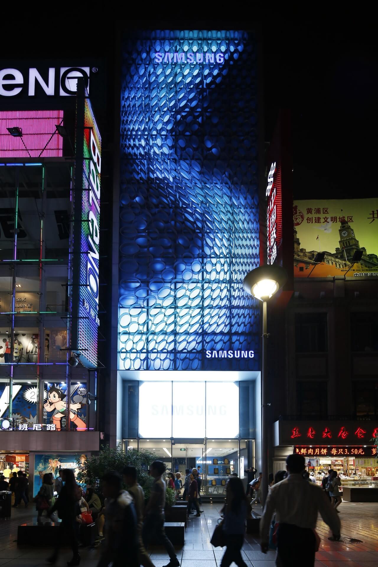On the bustling Nanjing pedestrian street in Shanghai, buildings are lost among one another; a crowded collage of signage fighting for attention. The challenge was to differentiate from neighboring buildings while creating meaningful brand identity and a valuable experience for pedestrians. The façade is a dynamic, ever changing façade. A multi-layered, three-dimensional design allows diversity in optics, a reflection of the diversity among Shanghai’s inhabitants and tourists. Because of the multilayered construction, the façade appears to have a different face depending on the viewer’s point of view, encouraging passers-by to notice the façade not once but several times. Stand still for a bit of wonder among the fast-paced city of Shanghai.